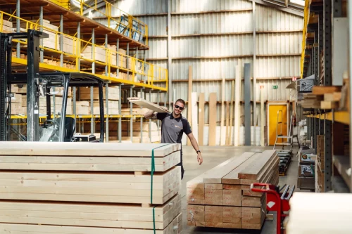 Kom jouw bouwmaterialen of bestelling eenvoudig afhalen in ons overdekte drive-in magazijn. Hulp nodig bij het inladen of het op maat zagen van producten? Wij helpen je graag!